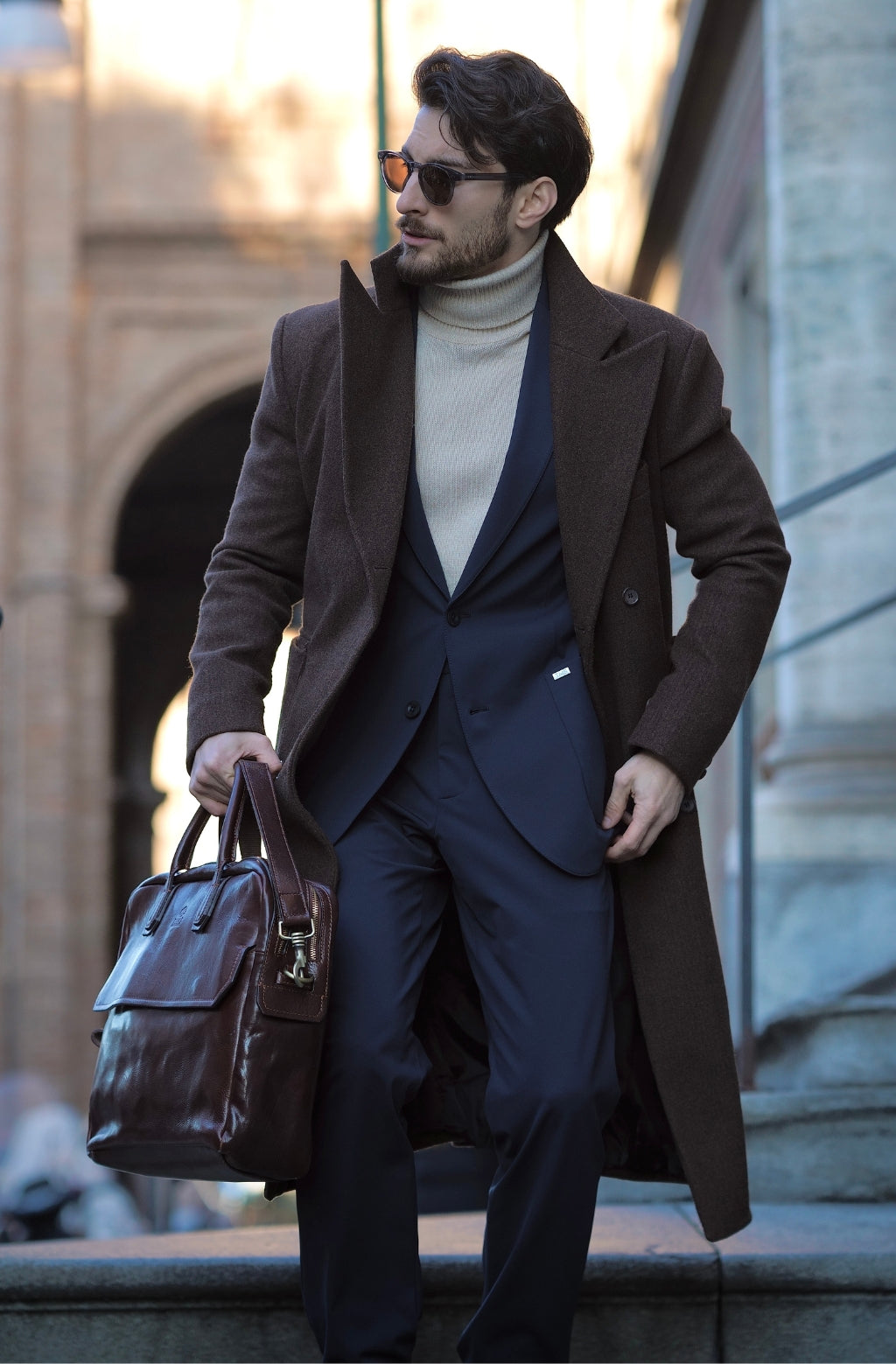 A large leather briefcase Nostromo fits everything you need. Hand-made of full-grain Italian leather the briefcase with a trolley strap and a detachable shoulder strap is a perfect travel companion. Two spacious compartments fit legal size paper, A4 size documents, and folders. In addition, it safely accommodates a 17-inch laptop, and a tablet as padded pockets protect from bumps and scratches. The work bag has plenty of slip pockets and a large zip pocket inside. If that is not enough- we made an additional pocket with a flap on the front and a slip pocket with an extra-strong magnetic closure on the back – ideal for belongings that you need easy access to.