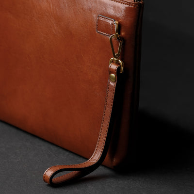 A manly Italian leather clutch purse. Minimalist design, perfect for those who like simplicity without renouncing elegance. It will accommodate all of your daily essentials including smartphone, small tablet, etc. and look all business with a touch of sartorial elegance.