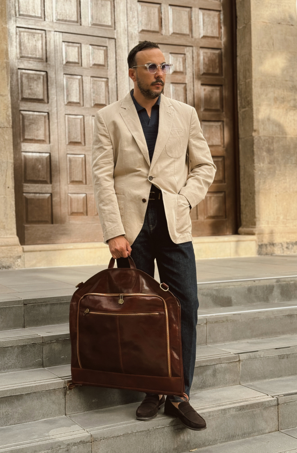 Leather Garment Bag - Travels with Charley