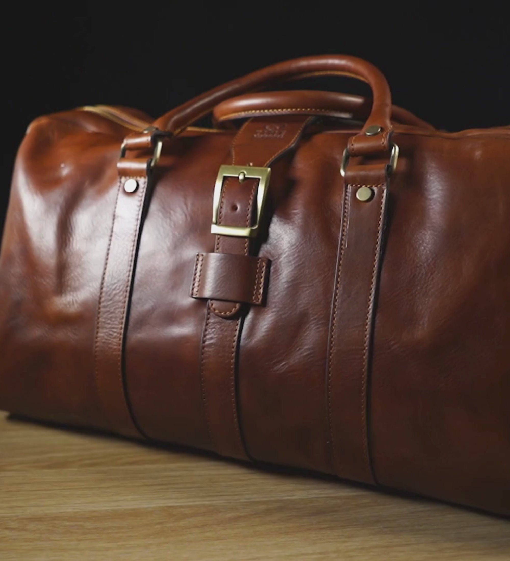 Cognac Brown Matte Leather Duffel Bag - Tender Is the Night