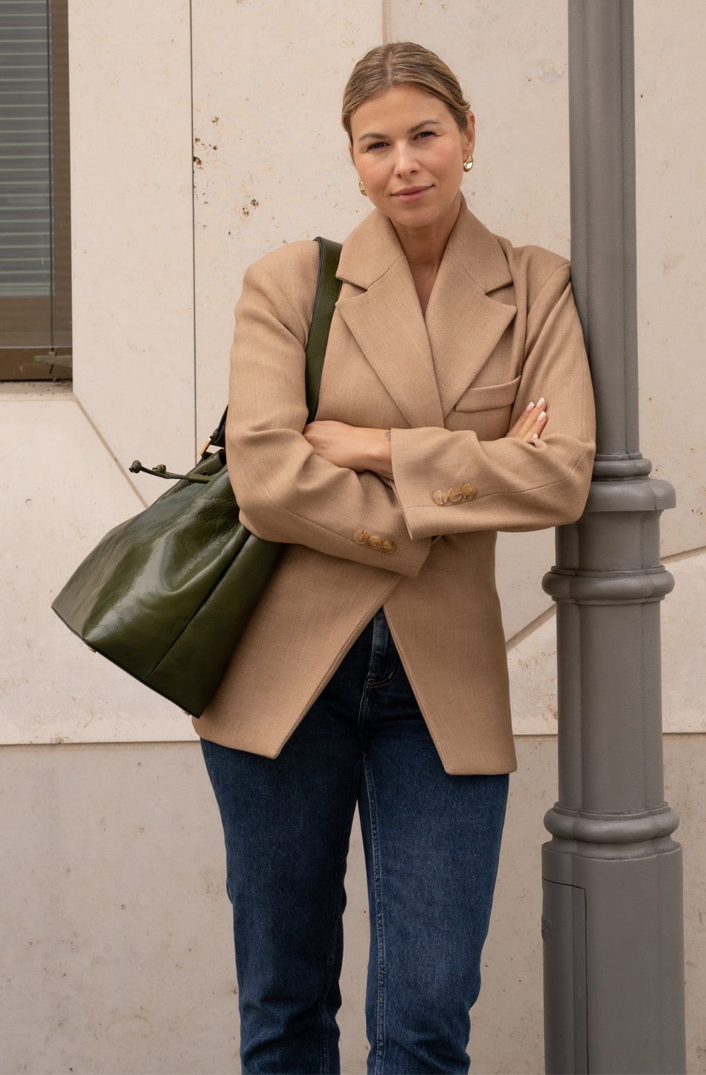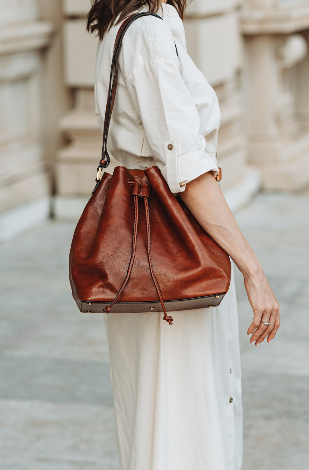 Sybil is a harmonious blend of timeless elegance and modern simplicity. Crafted from full-grain leather, this bucket bag is an effortless statement of refined taste. Its fluid silhouette and thoughtful design make it the perfect companion, whether you're strolling through the city or stepping into a polished affair. With an adjustable handle that combines comfort and grace, Sybil is a quiet celebration of craftsmanship - a bag that evolves beautifully with time, telling your story through its rich leather patina.
