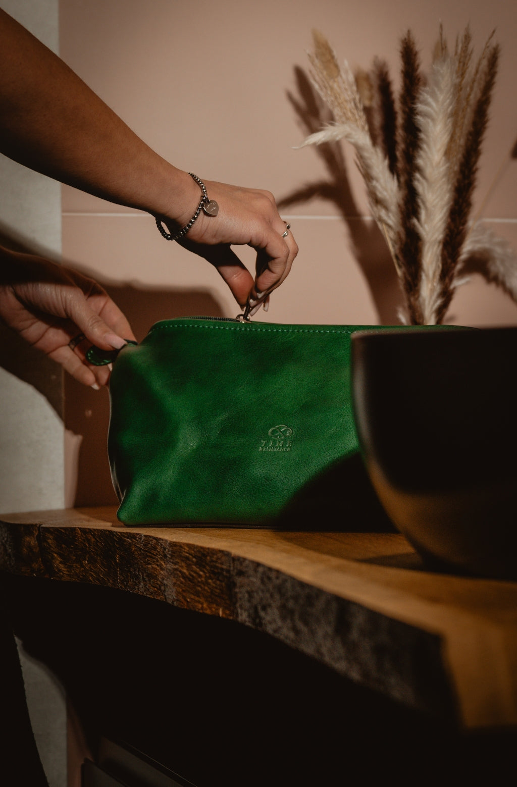 Time Resistance bags and accessories are crafted from premium full-grain, hand-dyed, vegetable-tanned Italian cowhide, known as Vachetta leather, which develops a beautiful patina and ages gracefully over time.