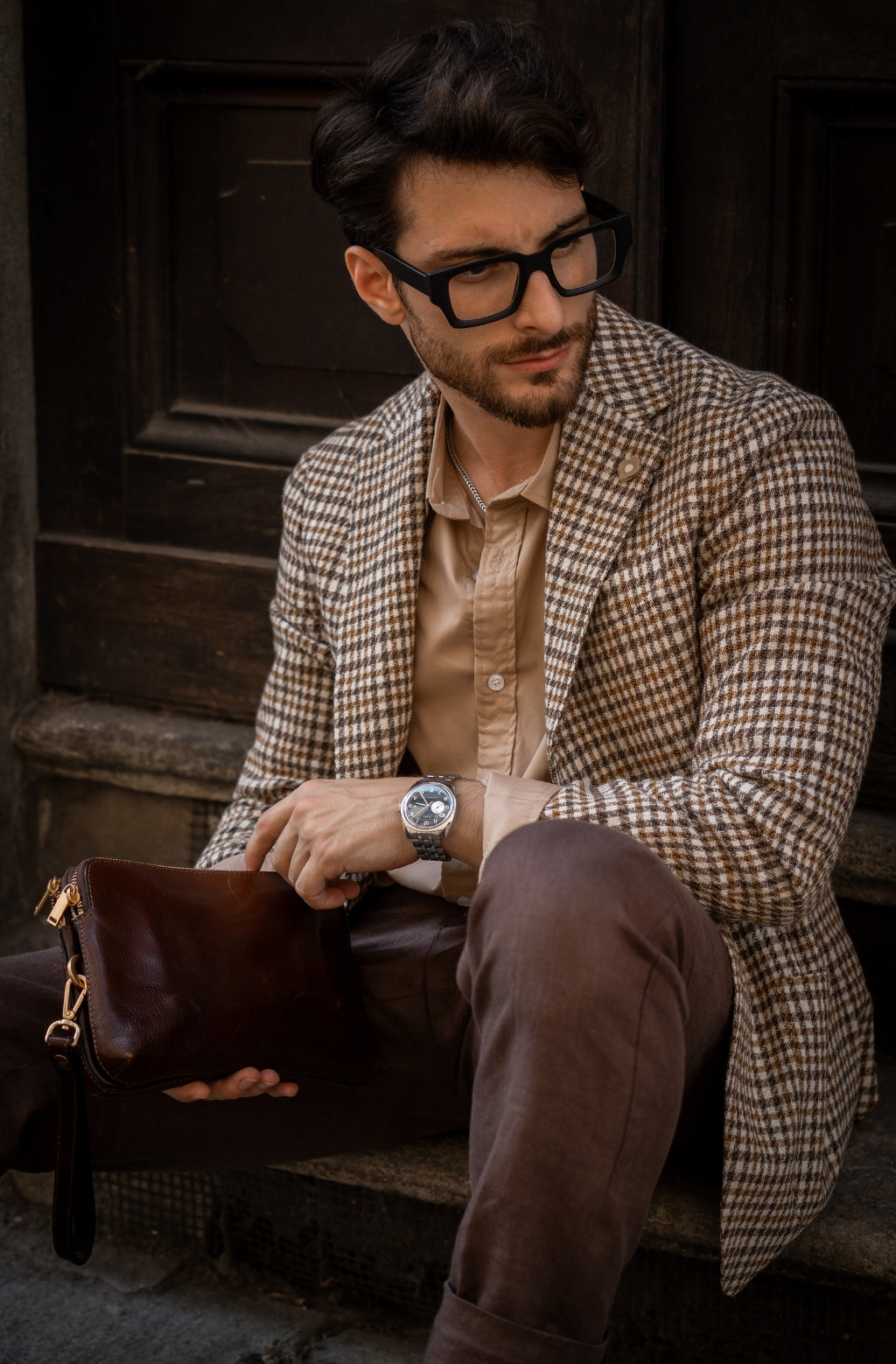 A full-grain leather clutch for a modern man, who isn’t keen on carrying a shoulder bag, but has come to realize that the bulk of his wallet is getting out of control. This clutch wallet provides a more sophisticated alternative to packing your whole life to an overstuffed wallet and the pockets of your jacket. It will accommodate all of your daily essentials and look all business with a touch of sartorial elegance.