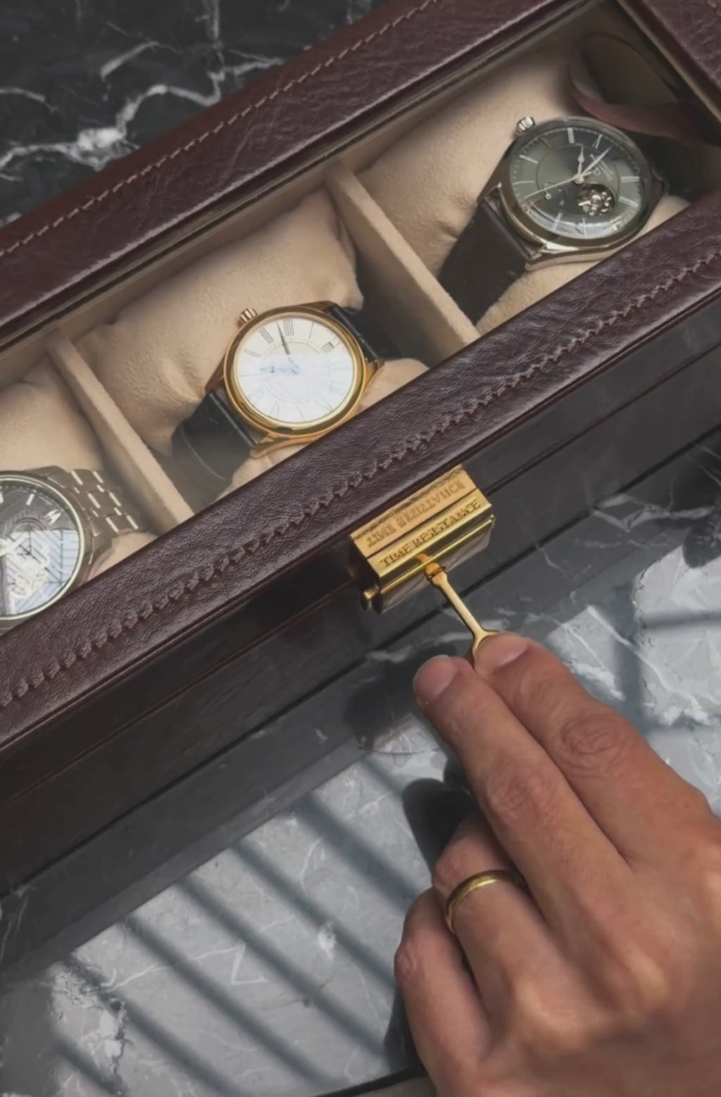 A tribute to quiet luxury, Silence is designed for those who understand the power of presence without noise. Crafted from full-grain leather, it offers an elegant home for your most personal timepieces - objects that mark moments, stories, and memories. With a clear top that offers a contemplative glimpse within, Silence invites appreciation without intrusion. Every detail is shaped by intention - structured, secure, and enduring.