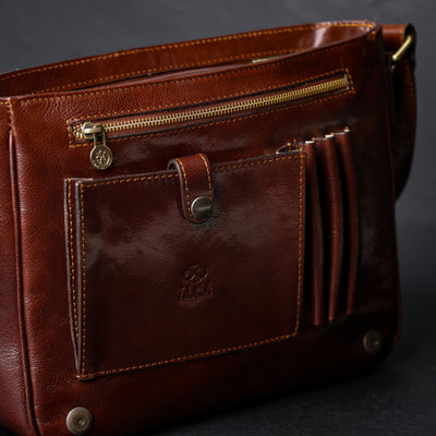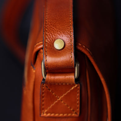 Time Resistance bags are crafted from premium full-grain, hand-dyed, vegetable-tanned Italian cowhide, known as Vachetta leather, which develops a beautiful patina.
