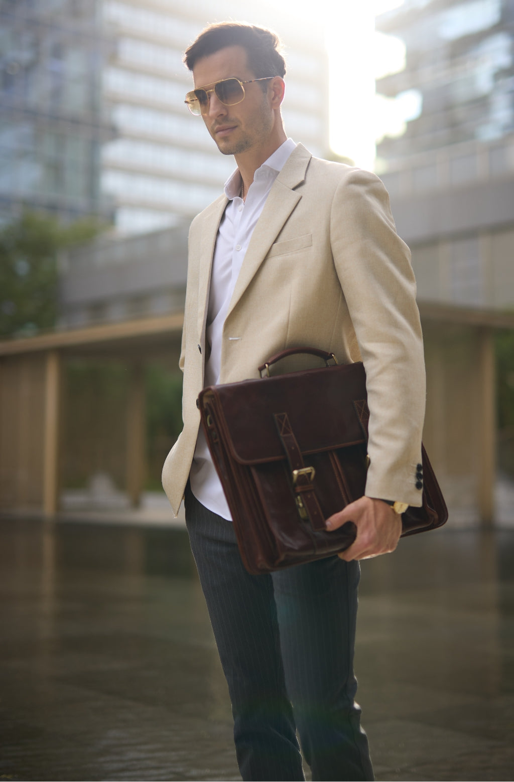 Meet one of the most beautifully designed leather satchels. Its British design -- inspired by vintage Italian stylish satchels – will not let you down. It is perfect to carry your laptop, document folders, all necessary electronics and can offer several helpful features, including an option to attach the bag to the handle of a pull-along suitcase!
