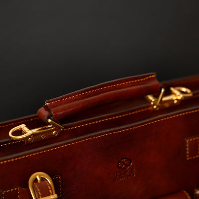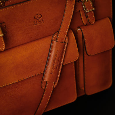 Time Resistance bags are crafted from premium full-grain, hand-dyed, vegetable-tanned Italian cowhide, known as Vachetta leather, which develops a beautiful patina.