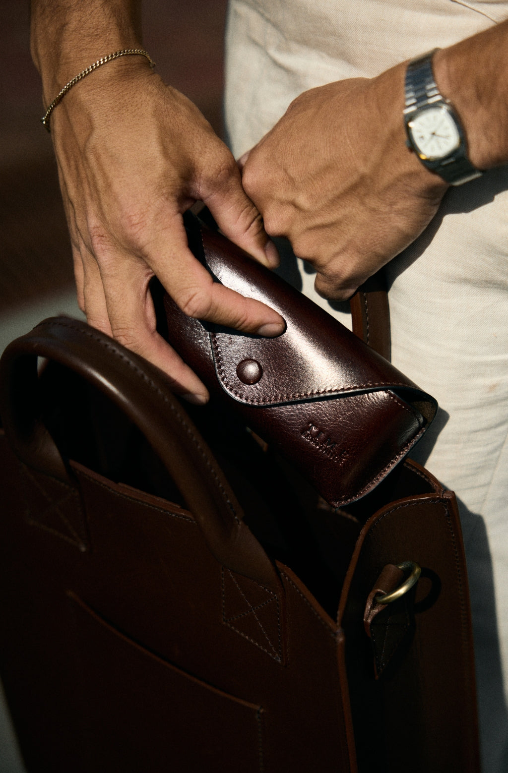 Minimal in form, rich in character. A High Wind In Jamaica is a structured leather glasses case crafted to protect your eyewear with quiet sophistication. Made from full-grain Italian leather, it’s a compact companion that slips easily into your bag or coat pocket. Whether it’s your everyday glasses or favorite sunglasses, this case holds them securely - no fuss, no flash, just timeless quality with a touch of old-world charm.