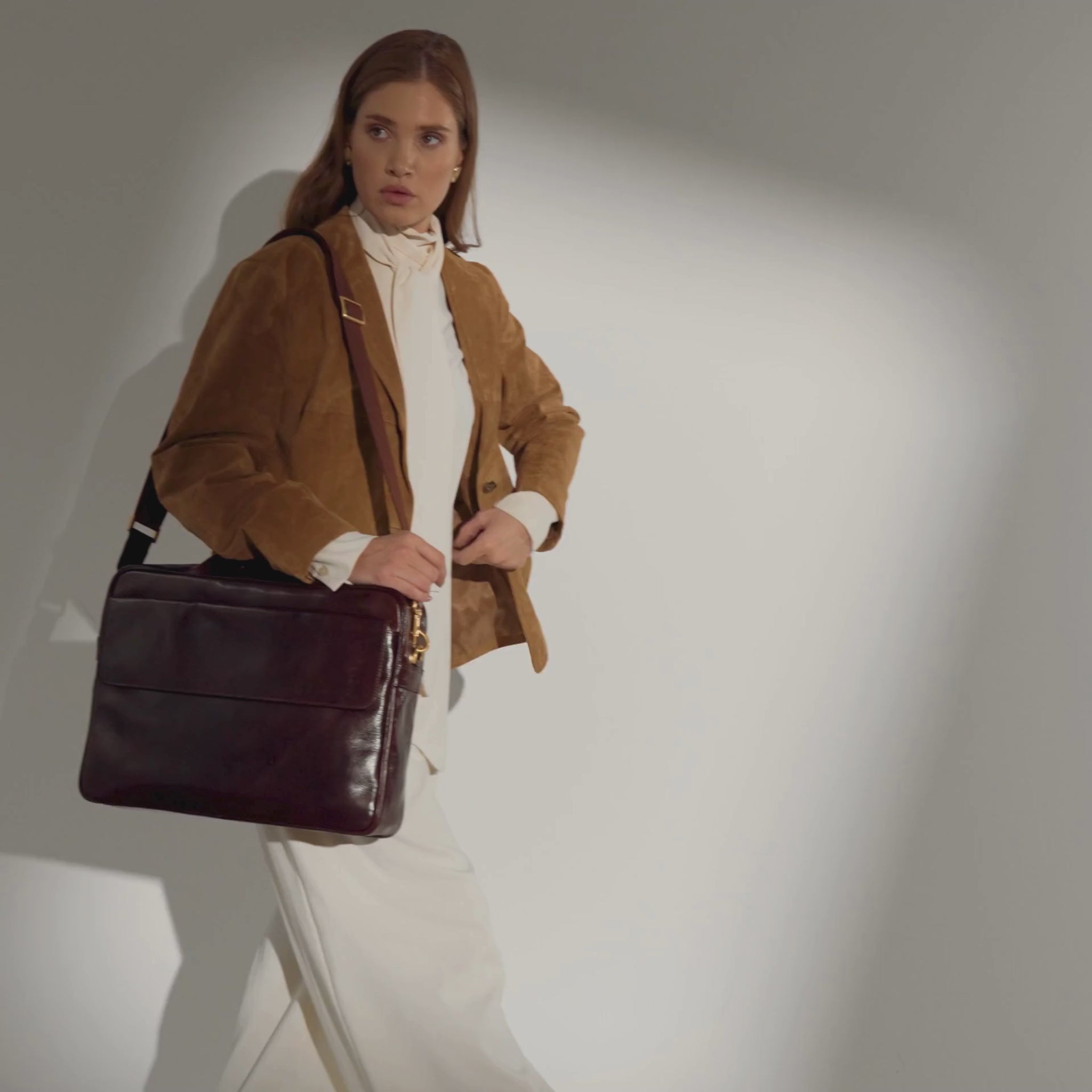 The Sheltering Sky - this leather briefcase is a great companion on the way to work or study. Its solid appearance is just perfect for both men and women's needs. Made from full-grain Italian leather, it comes with a trolley strap and a detachable shoulder strap, making it perfect for travel. The spacious compartments easily fit legal-sized paper, A4 documents, and folders, and it also has room for a 15-inch laptop. If that is not enough - we made an additional pocket with a flap on the front with an extra-strong magnetic closure ideal for keeping your essentials easily accessible.