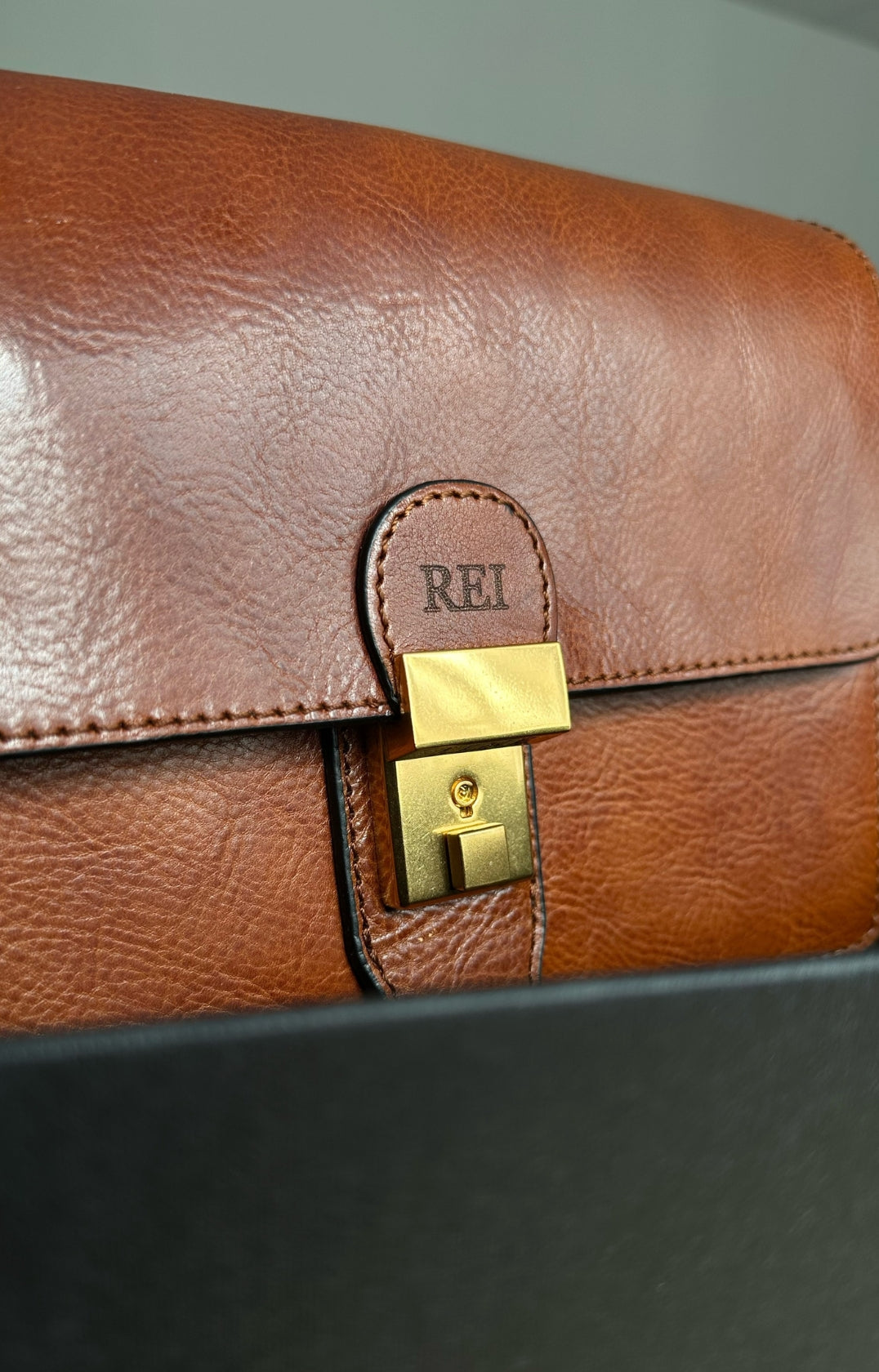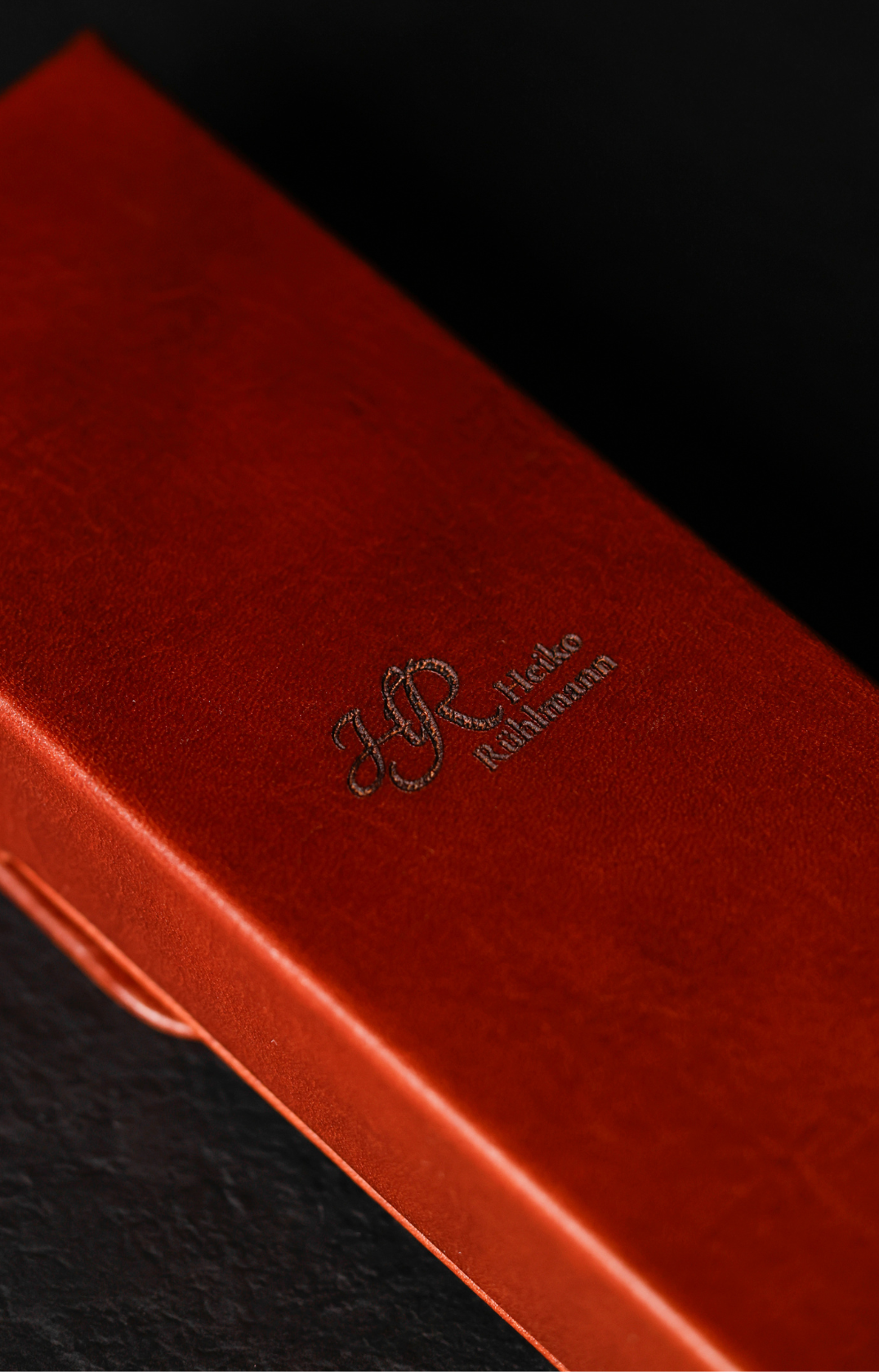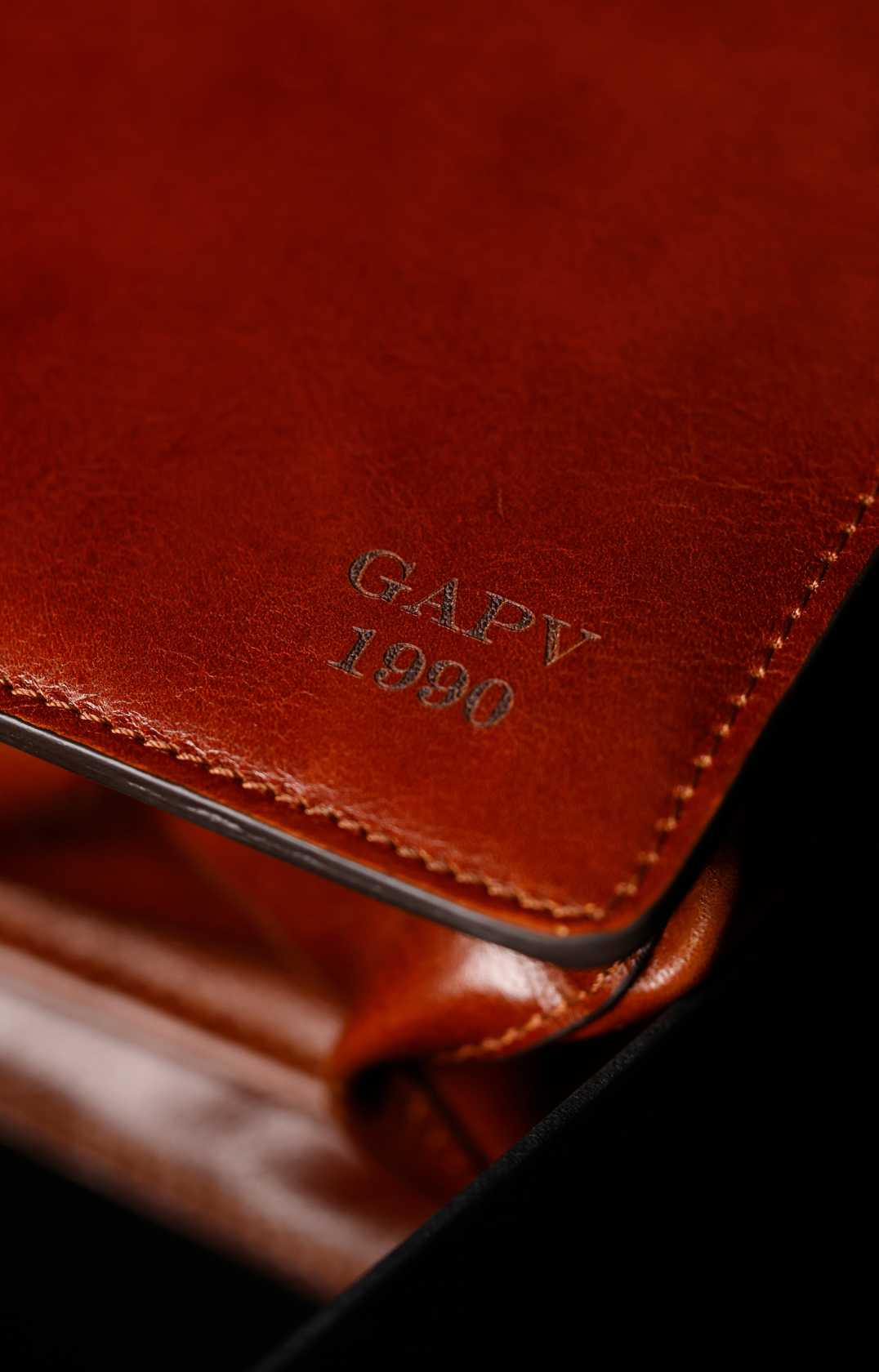 Laser engraving reacts with the leather surface, producing a unique shade each time that depends on the leather’s color; the engraving color is determined by the leather and cannot be freely selected.