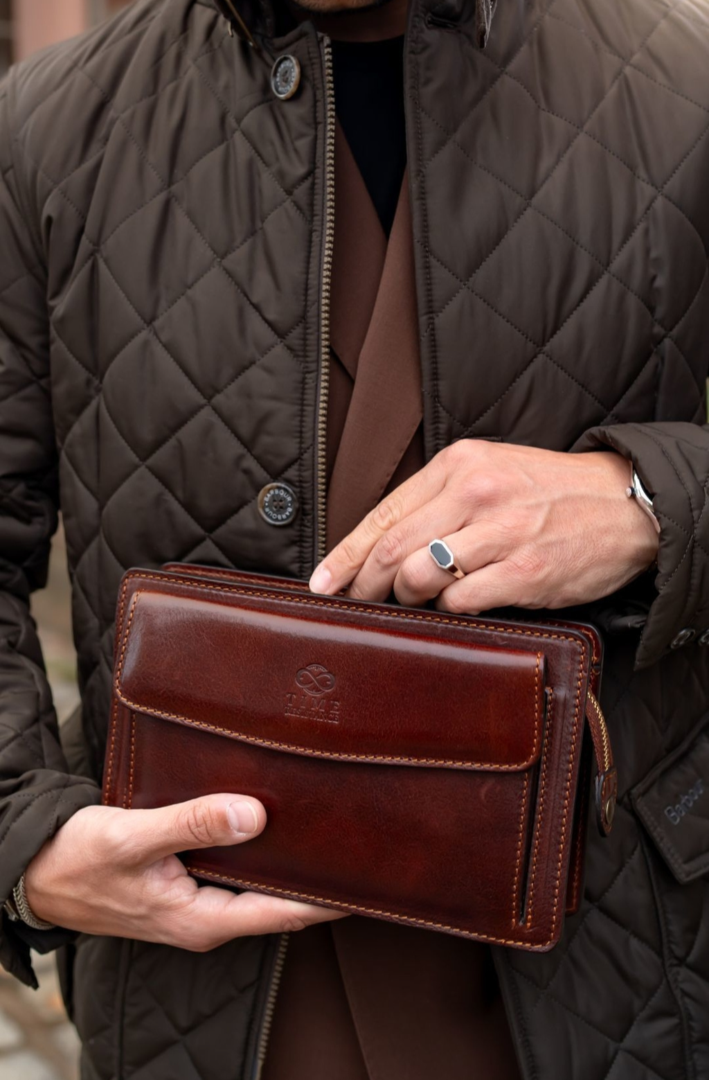 Hand dyeing is a slow, meticulous craft where every hide is colored by hand, layer by layer, using gentle circular motions. Instead of machines, it is the artisan’s touch that controls depth, warmth, and character. The dye is massaged into the grain, allowing the leather to breathe, absorb, and reveal its natural variations.
