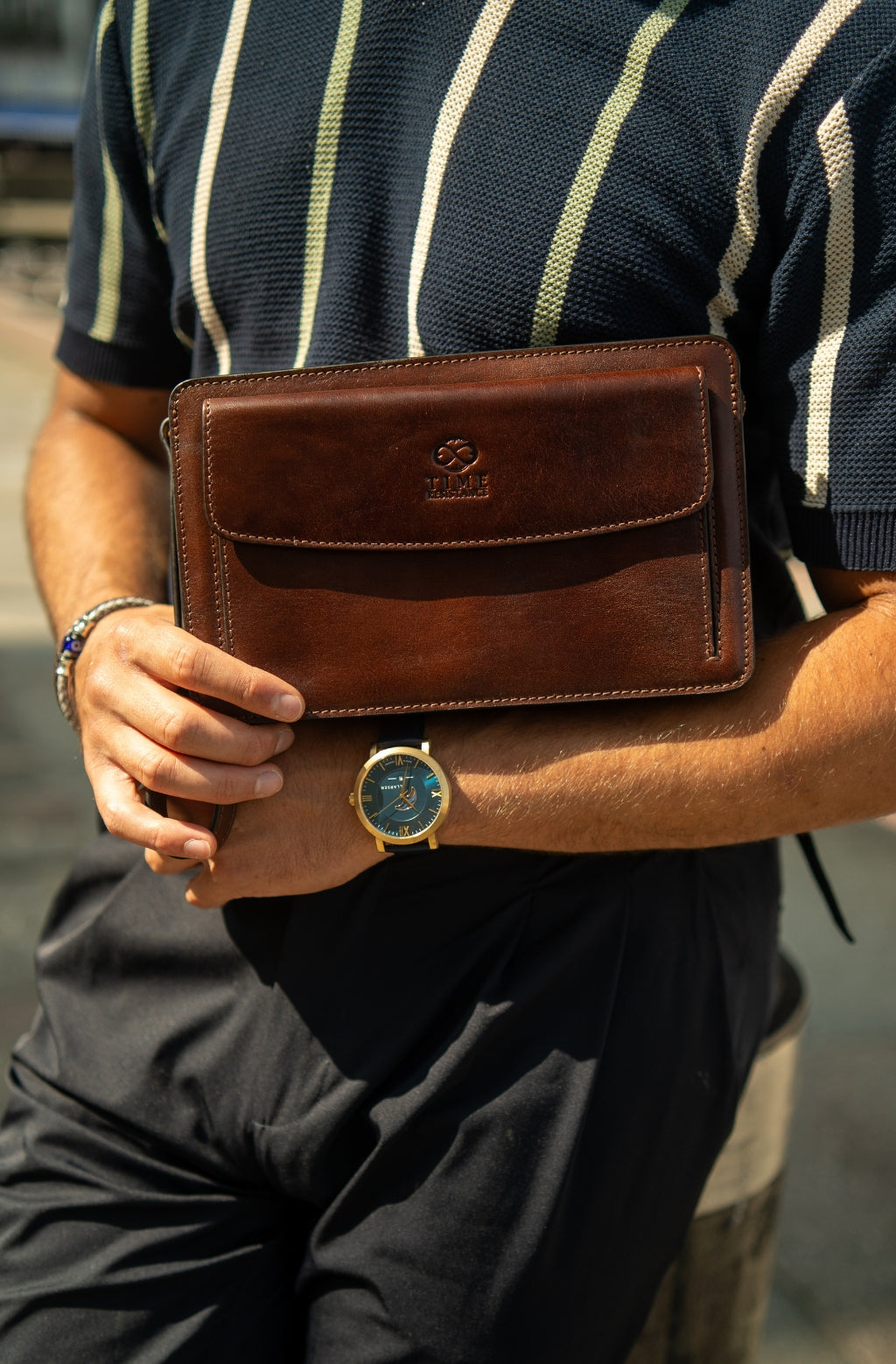 Time Resistance bags and accessories are crafted from premium full-grain, hand-dyed, vegetable-tanned Italian cowhide, known as Vachetta leather, which develops a beautiful patina and ages gracefully over time.