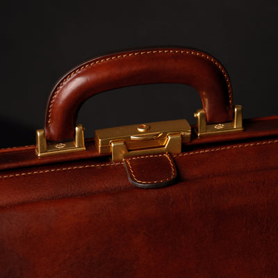 A leather doctor bag, as classic as the play. And, just like the play, it is all about character. Destined to be coupled with someone of confidence and stature, the Hamlet adds a note of originality while remaining completely classic and polished.