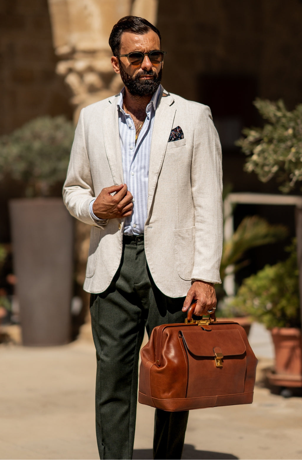 A leather doctor bag, as classic as the play. And, just like the play, it is all about character. Destined to be coupled with someone of confidence and stature, the Hamlet adds a note of originality while remaining completely classic and polished.