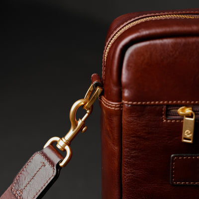Time Resistance bags are crafted from premium full-grain, hand-dyed, vegetable-tanned Italian cowhide, known as Vachetta leather, which develops a beautiful patina.