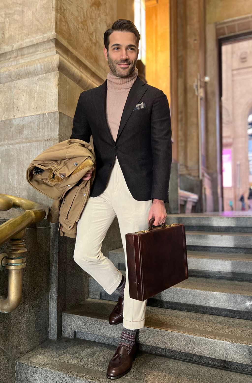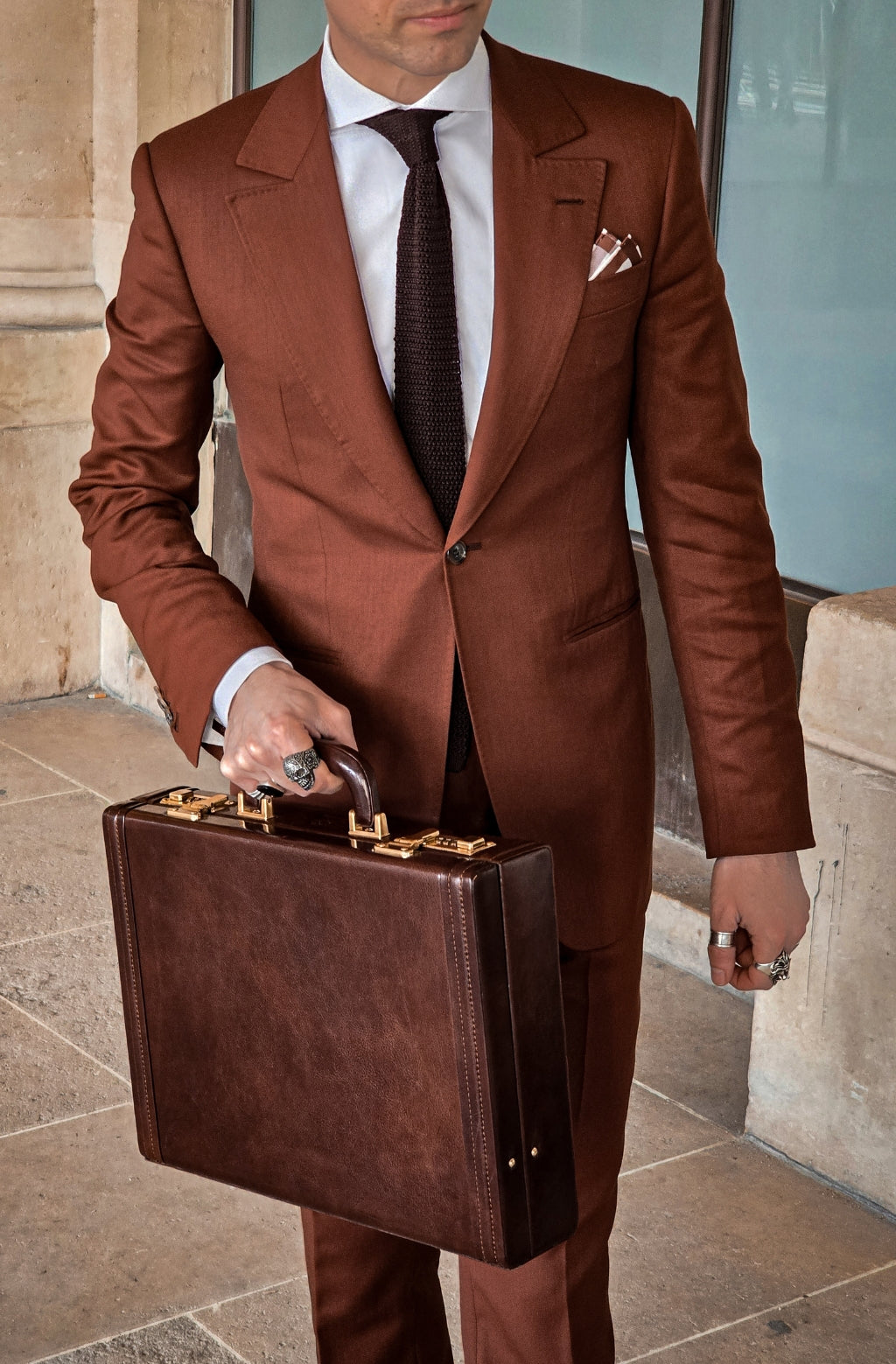 This premium leather attaché case is the perfect choice for the professional on the go. Expertly crafted from full-grain leather, this case features a classic design with plenty of room to securely store your laptop, documents, and other important items. The rich leather exterior is accented with gold color hardware, giving the bag a timeless look that will never go out of style. The interior is fully lined with a soft velvet. The combination lock provides additional security, giving you peace of mind that your items will stay safe and secure. Whether you're heading to the office or jet-setting around the world, this luxurious leather attaché case is the perfect companion.
