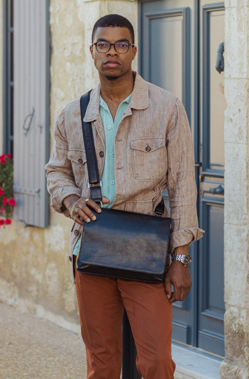 This leather messenger bag is perfect for the modern professional. Its slim profile and contemporary design make it a great choice for those who prefer to travel light. Crafted from premium leather, it is both luxurious and practical. Its wide adjustable shoulder strap ensures comfortable carrying, and its multiple pockets provide ample storage space for all your essentials. Its sleek, minimalist look is sure to be a stylish addition to any professional wardrobe.